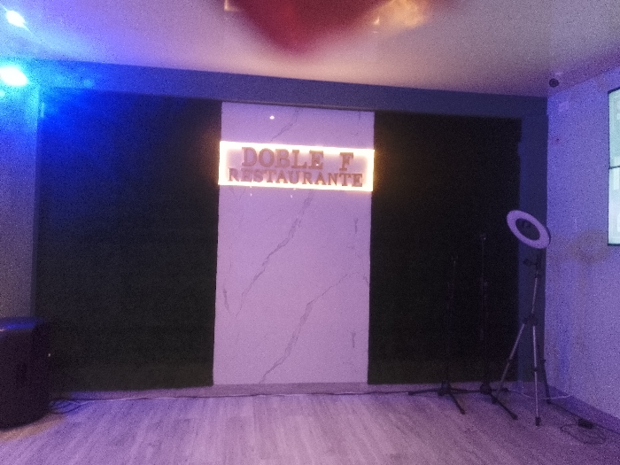 The image depicts the interior of "DOBLE F RESTAURANTE" in an unknown city and state