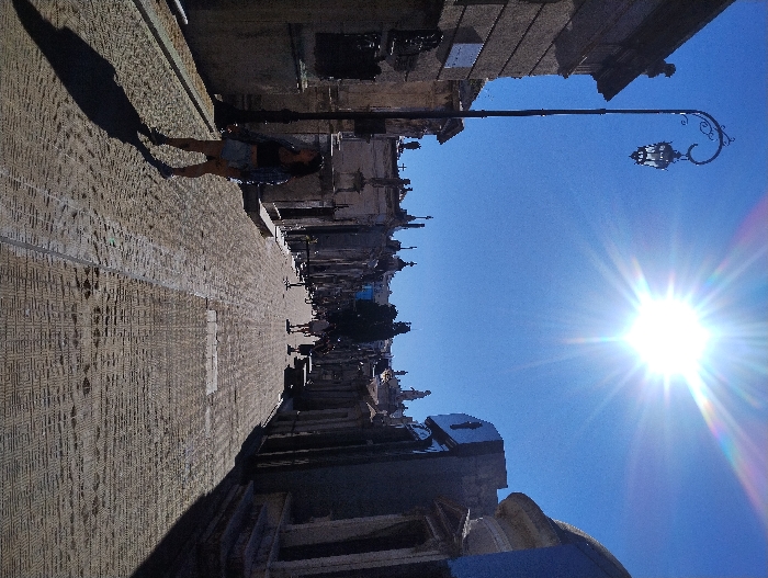 - "The image displays a sunlit pathway within the Recoleta Cemetery in Buenos Aires, Argentina, under a clear blue sky with a prominent sunburst in the upper right" by FM-y4xs92, licensed under CC BY 4.0