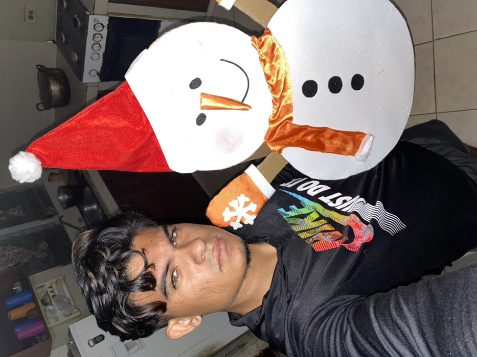 - "The image displays a male subject posing for a photograph with a decorative snowman figure inside what appears to be a domestic kitchen" by FM-YwVSA2, licensed under CC BY 4.0