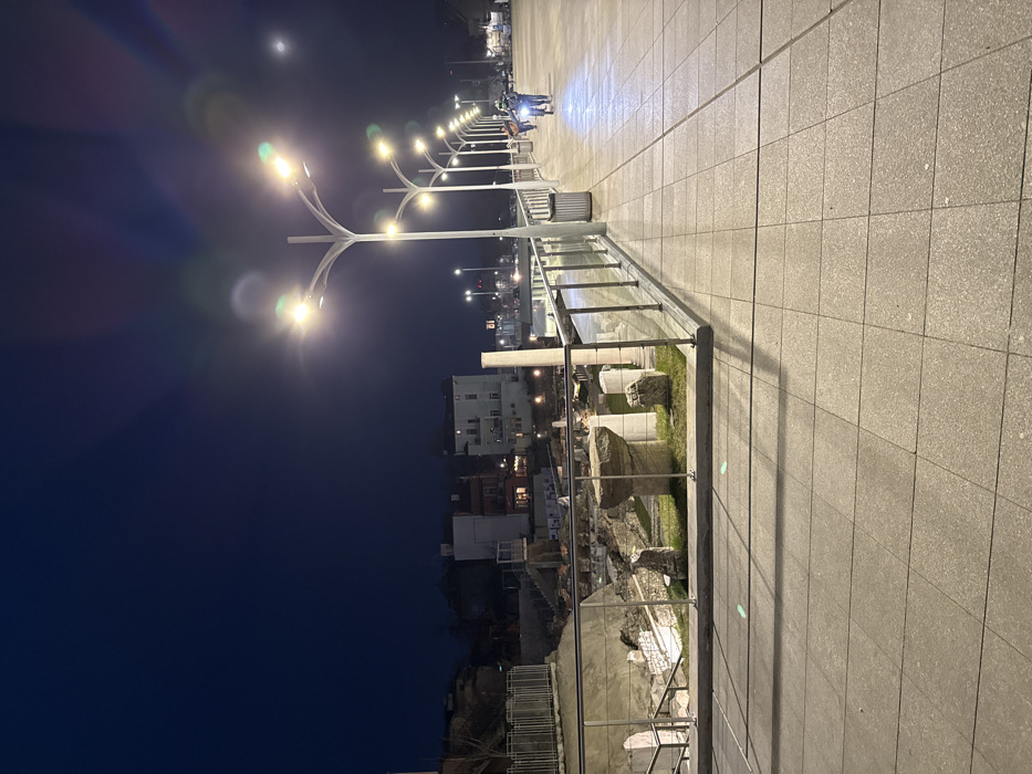 - "The image displays an outdoor nighttime scene in Plovdiv, Bulgaria, specifically along the wide pedestrian walkway bordering the Roman Stadium excavation site" by FM-Jt09G2, licensed under CC BY 4.0