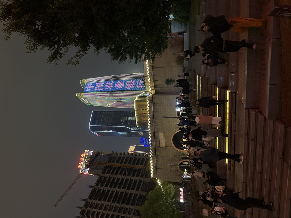- "An evening scene in 江北城街道, China, depicts a bustling public area with modern skyscrapers towering over an ancient-style stone wall and tiered steps" by FM-K0Kp62, licensed under CC BY 4.0