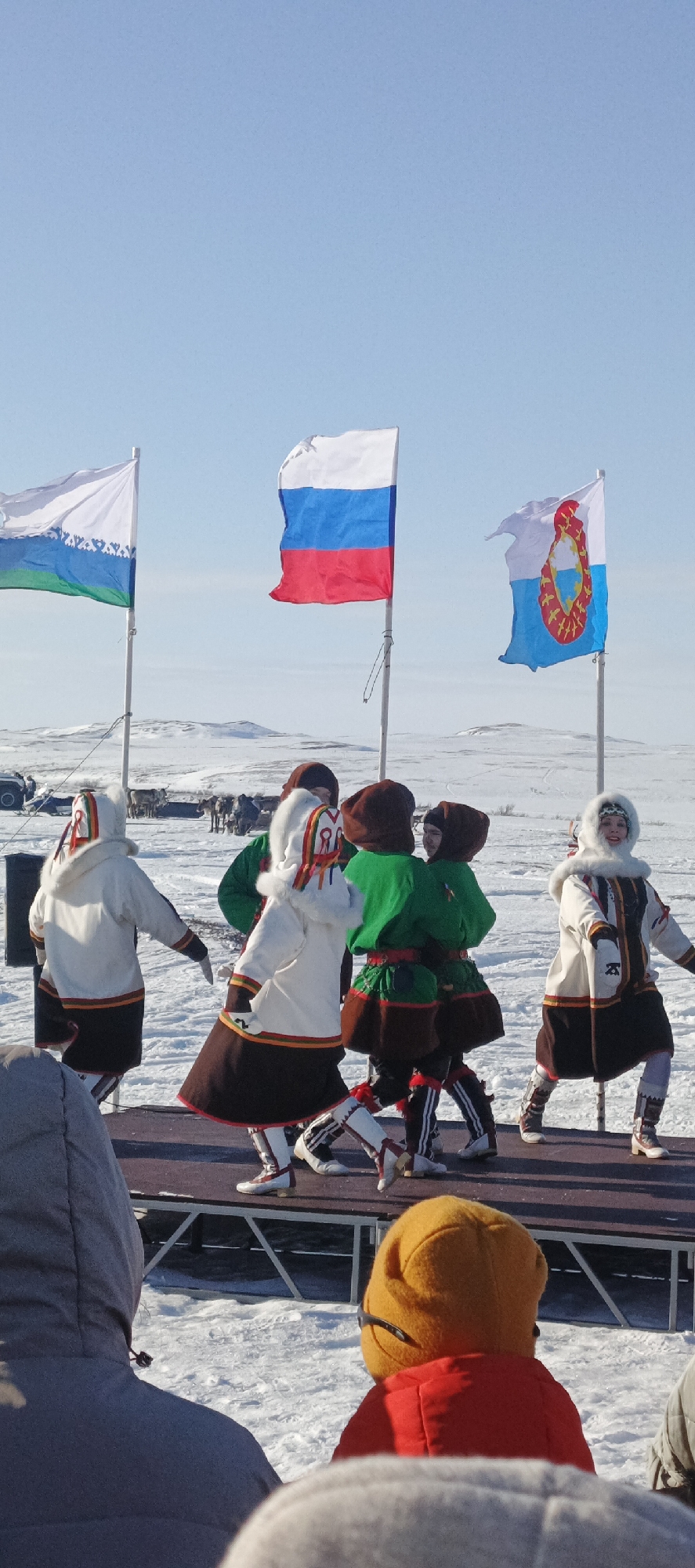 - "The image depicts an outdoor cultural performance in Nelmin-Nos, Russia, set against a vast, snow-covered tundra landscape under a clear blue sky" by FM-lbJQ42, licensed under CC BY 4.0