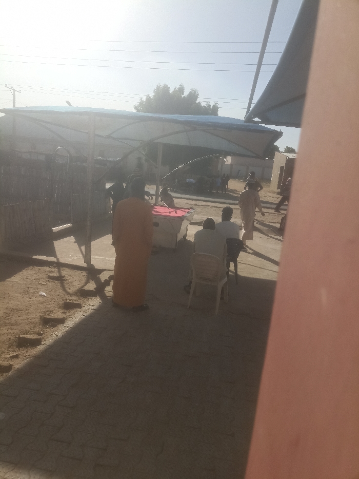 This image presents an outdoor daytime scene in Dabawa, Nigeria, under bright sunlight, evident from prominent shadows