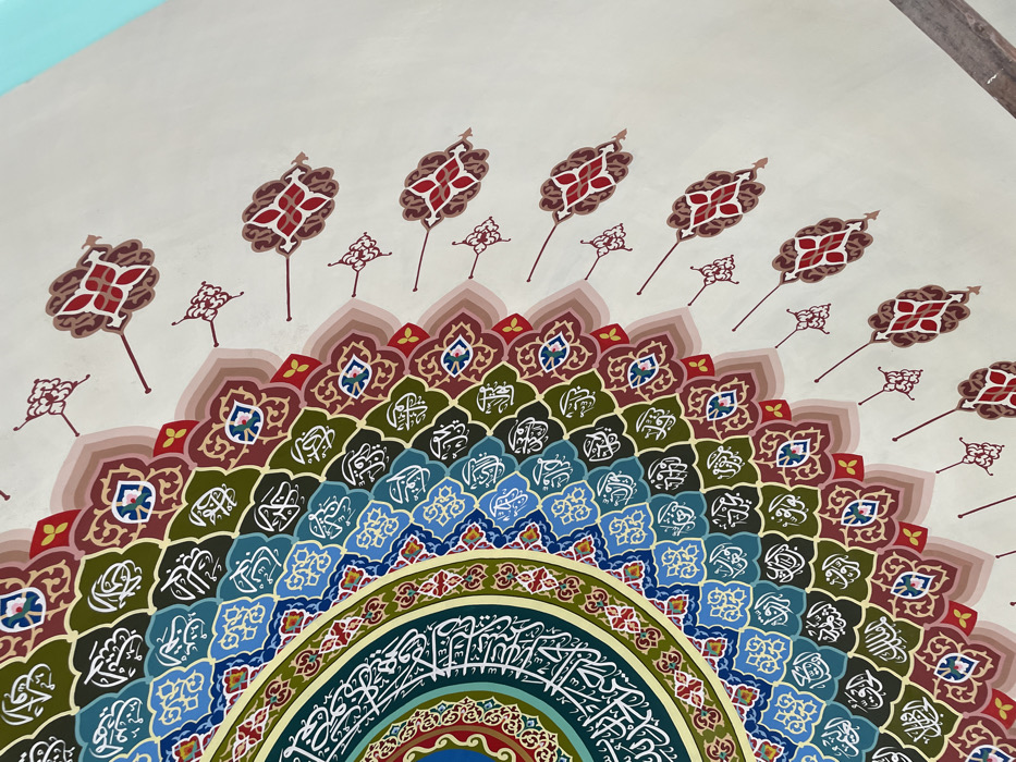 - "The image presents a partial, close-up view of an elaborate Islamic mural, located within a building in Kumbang, Indonesia" by FM-56aBo1, licensed under CC BY 4.0