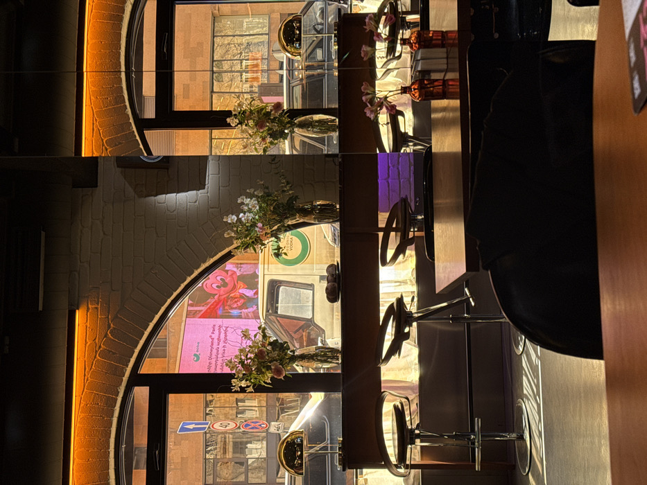 - "The image depicts the interior of a cafe or bar in Yerevan, Armenia, viewed from a seated position, looking out through large arched windows at a street scene during golden hour" by FM-6icqR2, licensed under CC BY 4.0