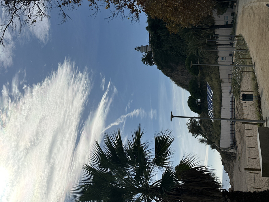 - "The image depicts a coastal scene in Calella, Spain, captured on a day with a bright blue sky and extensive wispy white clouds, some displaying faint iridescence on the left" by FM-vN6QQ2, licensed under CC BY 4.0