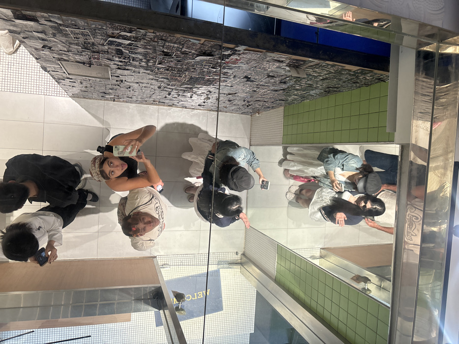 - "An overhead photograph captures six individuals reflected in a large, polished floor or mirror within a modern, indoor commercial establishment in Hà Nội, Vietnam, likely a cafe or retail space" by FM-bmo3E3, licensed under CC BY 4.0