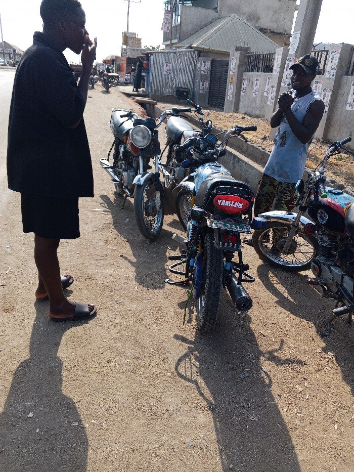 The image depicts a daytime street scene in Zango-ndaji, Nigeria