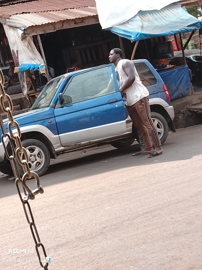 - "The image depicts a street scene in Onitsha, Nigeria, featuring a male individual and a vehicle positioned in front of a roadside stall" by FM-bgsL83, licensed under CC BY 4.0