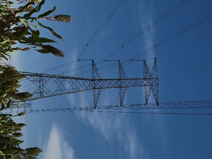 - "A daytime scene depicts a large, metal lattice-type electricity transmission tower positioned in a field near Unknown, Unknown" by FM-g6YQ23, licensed under CC BY 4.0