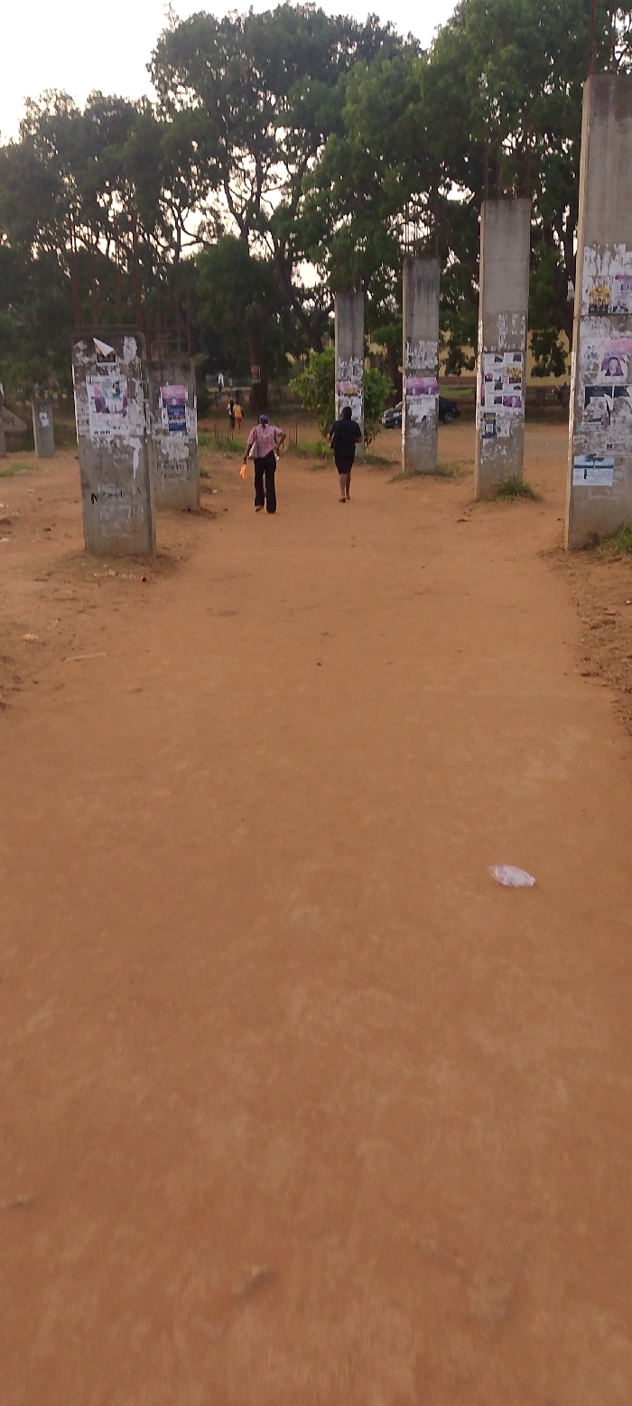 The image displays an outdoor scene in Nsukka, Nigeria, viewed from a low angle
