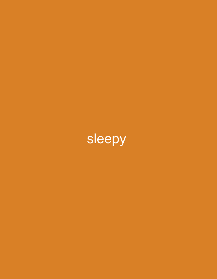 The image features a solid orange background. In the center of the frame, the word "sleepy" is displayed in a clean, white sans-serif font. The word is positioned horizontally and appears to be in the middle ground, neither too large nor too small in relation to the background. The overall impression is simple and direct.