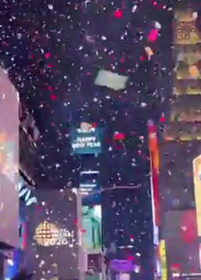 The video depicts a New Year's Eve celebration in Times Square, New York City