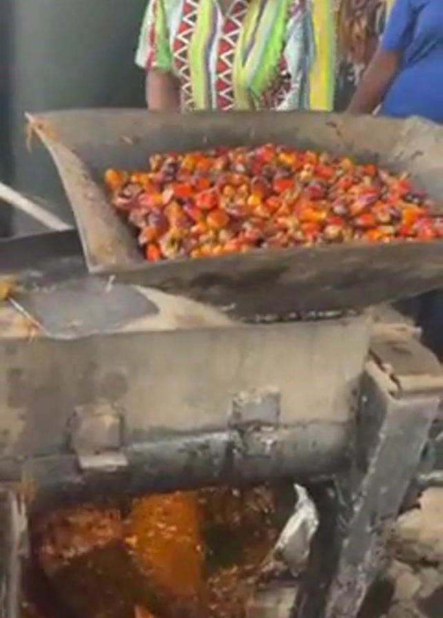 A machine is extracting oil from palm fruits