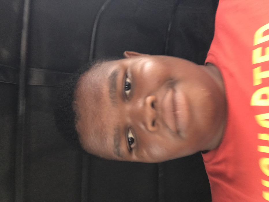 A young individual with dark skin, short dark hair, and dark eyes is depicted in a close-up, chest-up view
