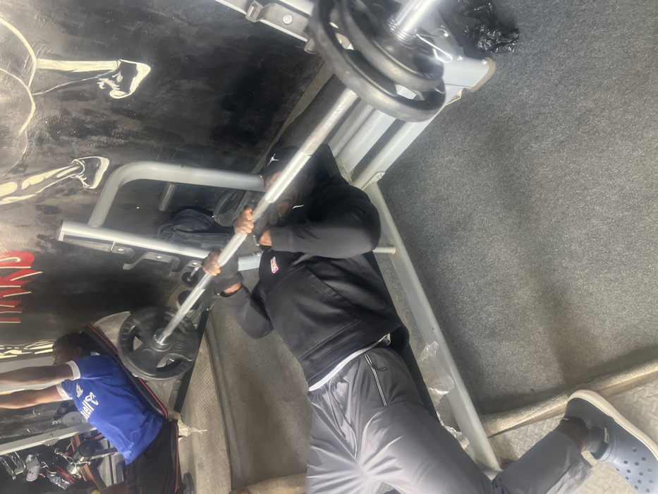- "Inside a gym, a man in a black hoodie and gray pants is performing a barbell squat" by FM-Etqhn1, licensed under CC BY 4.0