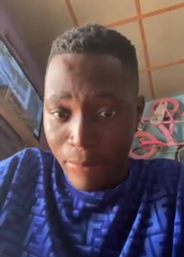 A young man with short, dark hair and a blue patterned shirt is looking directly at the camera