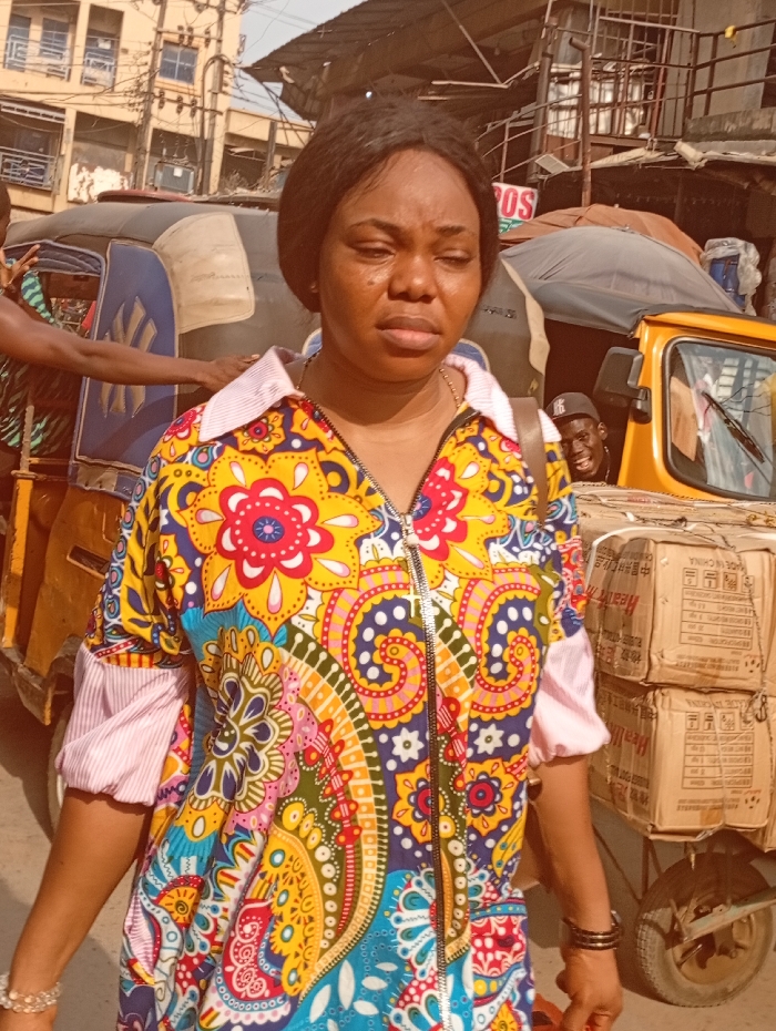 The image presents a daytime urban street scene in Fegge, Nigeria