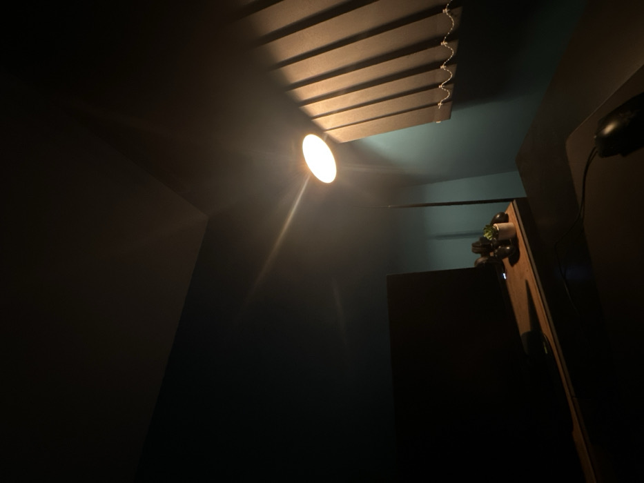 An interior room in Smolyan, Bulgaria, is depicted under dim artificial lighting