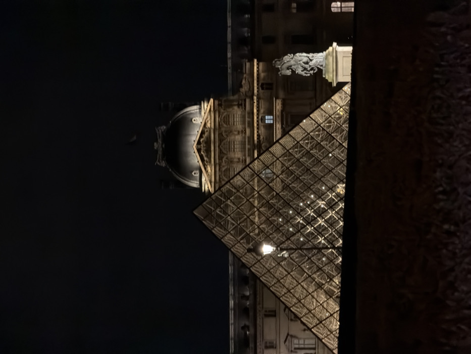 - "Night view of the Louvre Museum in Paris, featuring the iconic glass pyramid illuminated with warm light" by FM-ilC4O2, licensed under CC BY 4.0