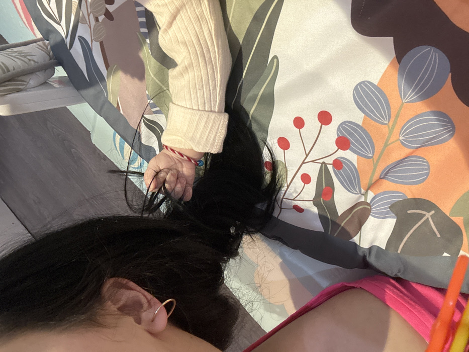- "The image captures a close-up, top-down view of an adult and an infant interacting indoors in Pernik, Bulgaria" by FM-Sz60i2, licensed under CC BY 4.0