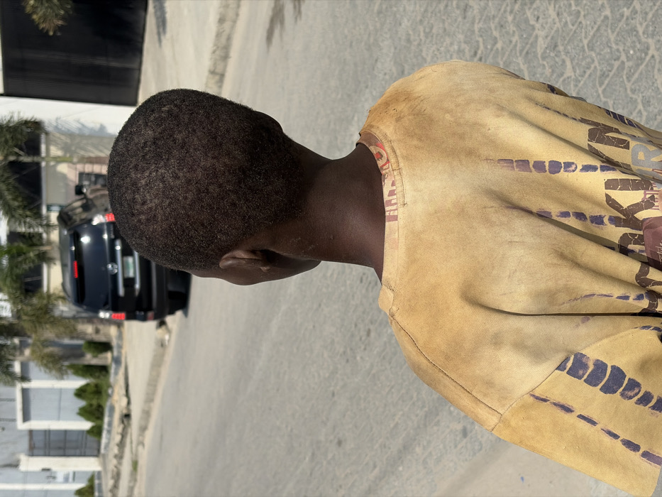 The scene is an outdoor street in Alaguntan, Nigeria, under bright daylight