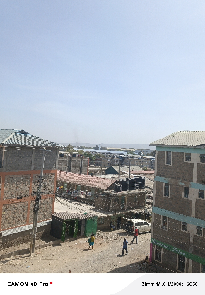 The image depicts an elevated view of a densely built urban environment within Kitengela ward, Kenya, under a clear, bright sky