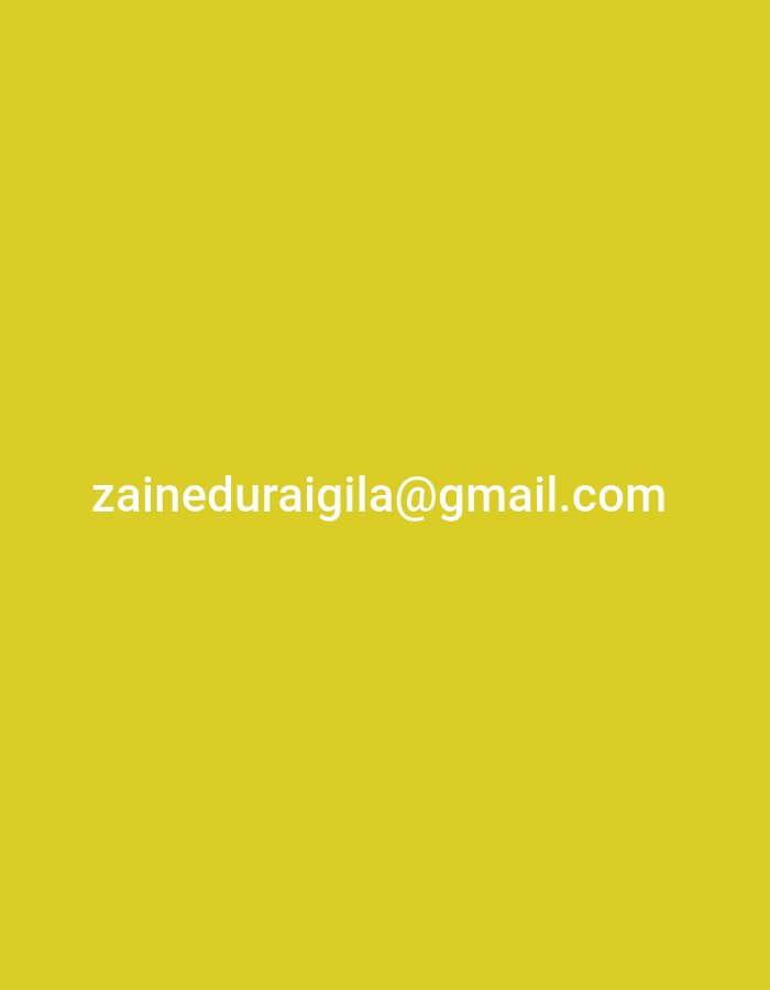 The image displays white text centered on a solid yellow background. The text reads "zaineduraigila@gmail.com". No individuals, additional subjects, or objects are present. No actions or interactions are depicted. The environment is uniformly yellow. The location is the city of Unknown, Unknown.