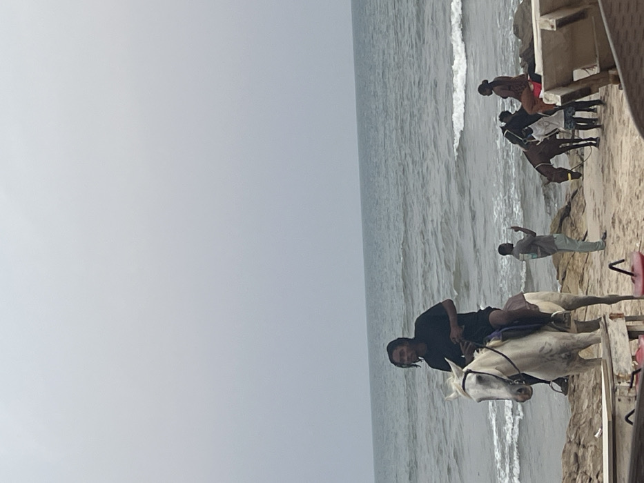 - "At a beach, a man rides a white horse along the shore" by FM-w5W832, licensed under CC BY 4.0
