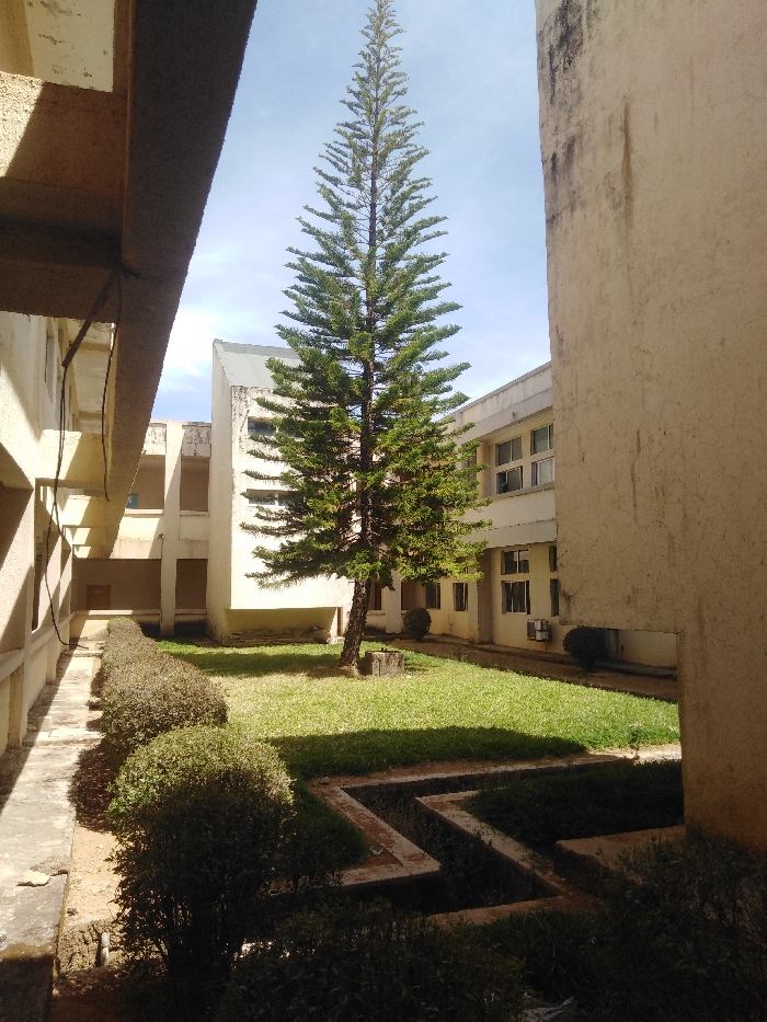 This image displays an outdoor courtyard situated in Gwong, Nigeria
