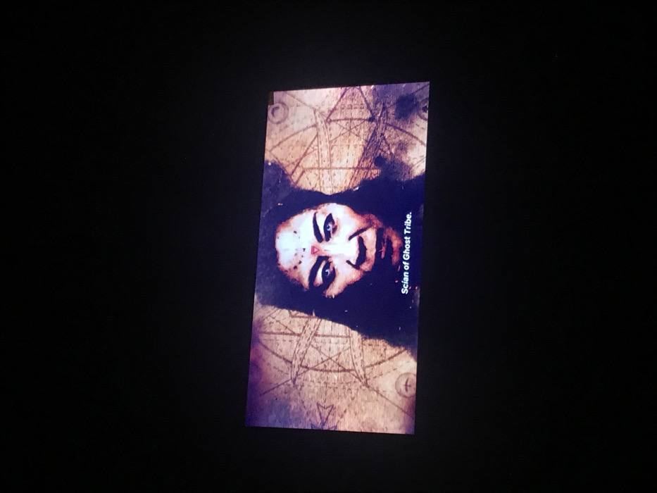 A rectangular image with a dark background shows the face of a person, identified as "Scian of Ghost Tribe"