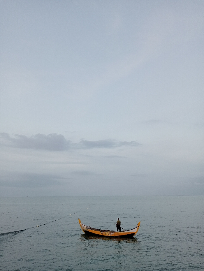 - "The image displays a traditional fishing boat on calm, dark blue-grey water under an overcast, light grey sky in Lhokseumawe, Indonesia" by FM-PCRfP2, licensed under CC BY 4.0