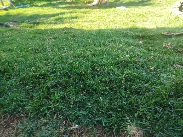 A close-up shot showcases a vibrant green lawn, its blades varying in length and texture