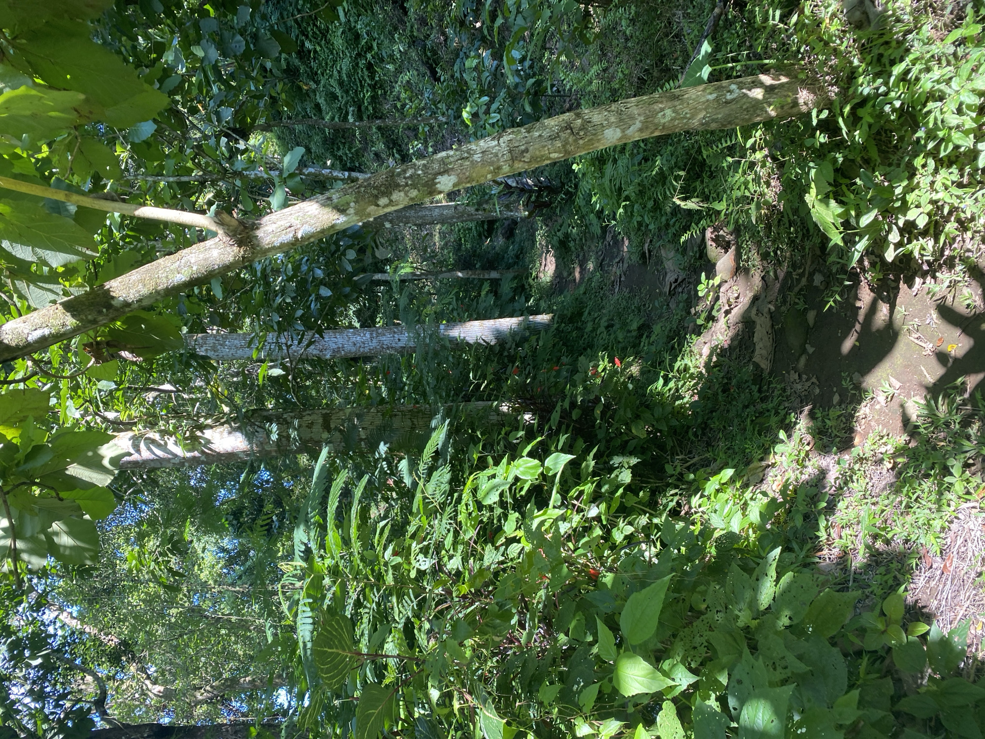 This photograph depicts a trail in a heavily vegetated area, presumably near Bengkel, Indonesia