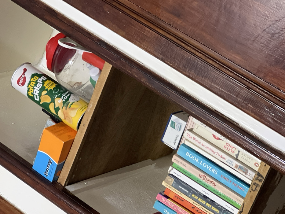 - "This image depicts an angled view of an interior storage space, specifically two shelves built into a larger dark brown wooden framework with a white trim, located in Casablanca, Morocco" by FM-j0iBd2, licensed under CC BY 4.0