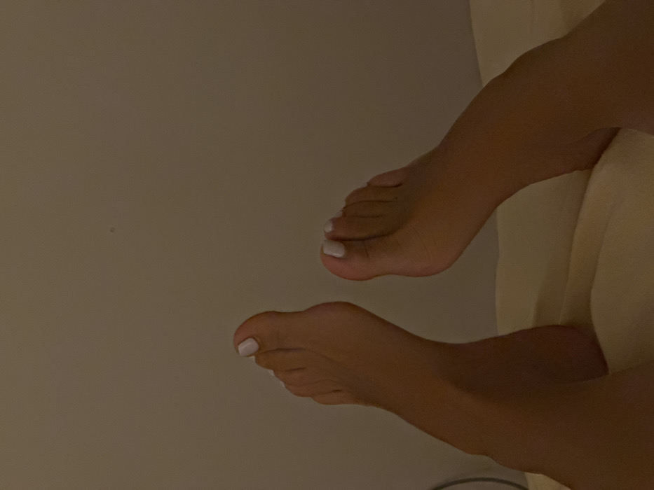 The image displays two human feet positioned upwards, with the toes angled towards the top of the frame