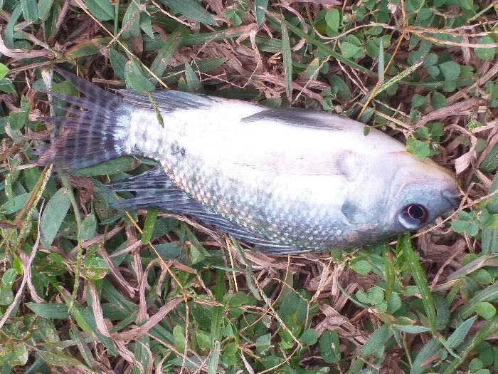 - "A single, medium-sized fish, consistent with a Tilapia species, is depicted lying inert on its left side on natural ground in Lhokseumawe, Indonesia" by FM-lMQUs2, licensed under CC BY 4.0