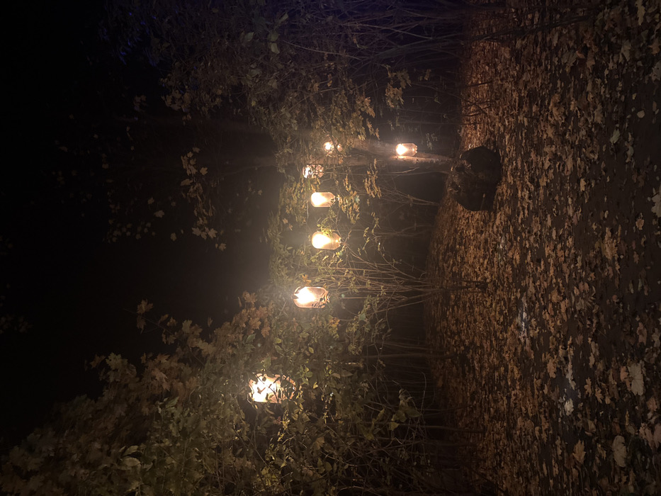 - "The image displays a nighttime scene within a wooded area or park in Łódź, Poland, consistent with an outdoor light installation event like the Light Move Festival" by FM-Cr3ZF2, licensed under CC BY 4.0