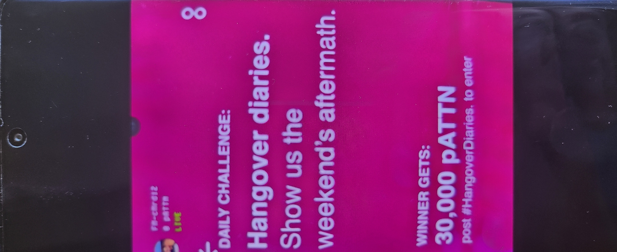 - "This image shows a screen promoting a "Daily Challenge: Hangover Diaries" contest, where participants are asked to share their weekend's aftermath" by FM-cNrdi2, licensed under CC BY 4.0