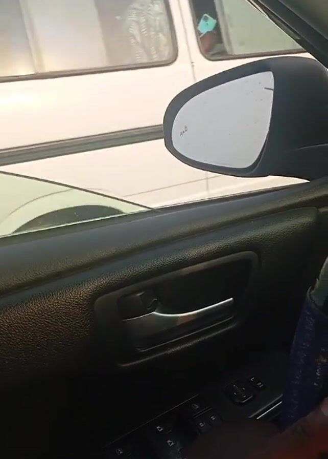 The video, taken from inside a car, shows a first-person perspective of driving on a road