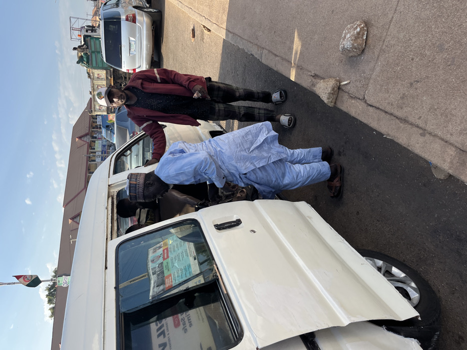The image depicts an urban street scene in Gura Top, Nigeria, under clear daylight