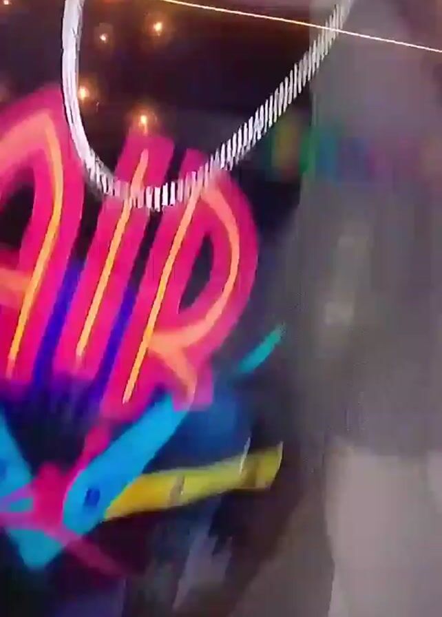 A hand moves a woven basket with various items inside. The items visible in the basket include colorful candies, a Rubik's cube, and other miscellaneous objects. A person with short, highlighted hair and a silver chain around their neck looks down. A stack of boxes of "Harvest Original Worms" in BBQ flavor are shown.