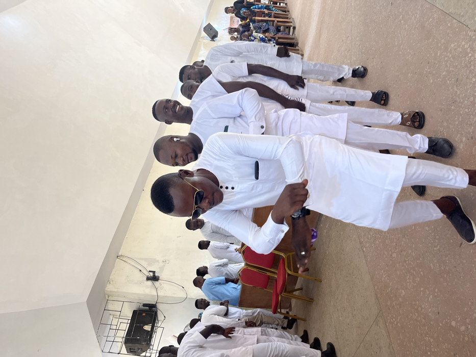 The scene depicts an indoor social gathering or ceremony at an unspecified venue in Unknown, Nigeria