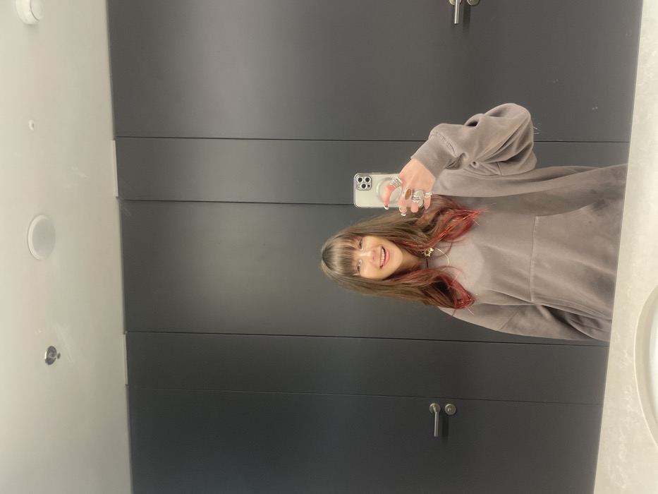 A female subject is depicted in a mirror selfie, presumably within a facility located in Hod HaSharon, Israel