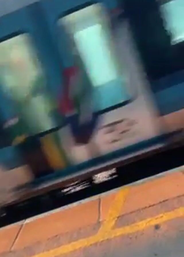 A train is seen moving past a train platform
