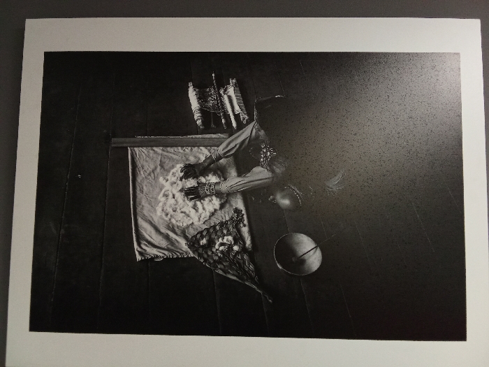 - "The image is a high-angle, black and white photograph depicting a craft scene on a dark, planked floor in Providencia, Chile" by FM-Luk4a2, licensed under CC BY 4.0