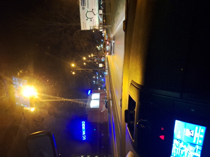 - "The image depicts a nighttime urban scene captured from the interior of a vehicle, looking forward through the windshield" by FM-xfSbF3, licensed under CC BY 4.0