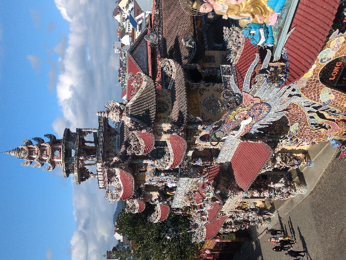 - "This image displays a highly ornate, multi-tiered Buddhist temple with a towering central pagoda, situated in the city of Xuân Thành, Vietnam" by FM-hIP683, licensed under CC BY 4.0