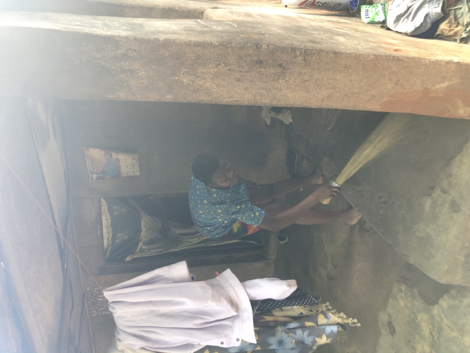 Within a structure in Orifite, Nigeria, a single individual, identified as a young female, is actively sweeping the floor
