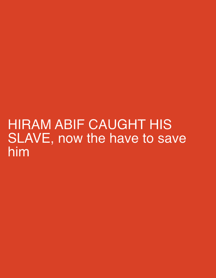 The image is a solid red background with white text. The text reads "HIRAM ABIF CAUGHT HIS SLAVE, now the have to save him". There are no discernible details relating to the city of Rogosh, Bulgaria, or any other specific environment. There are no people or objects present in the image other than the text itself.